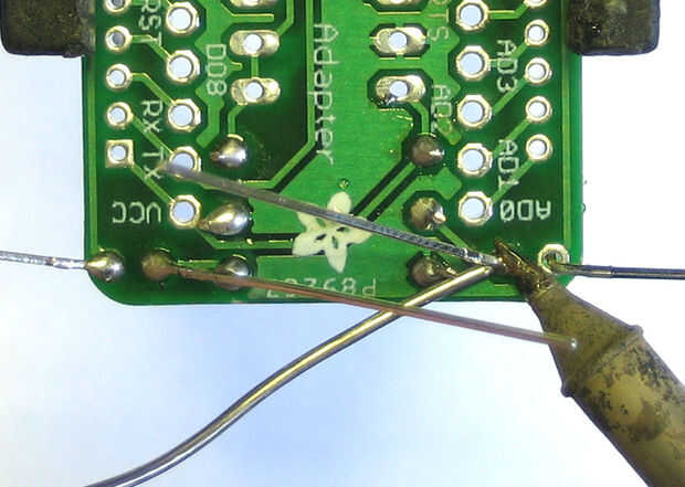 Una vez que se han duplicado comprobar que los LED están correctamente, voltee la placa y soldadura en ambos LEDs. Luego enganche los cables de