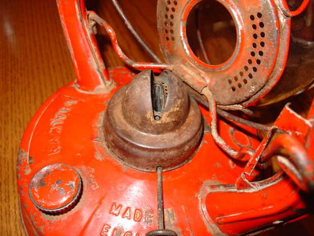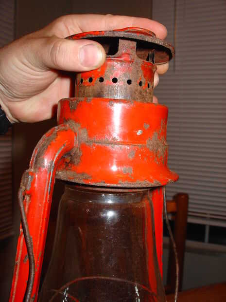 Una vez que ha cortado la parte inferior, puede volver a colocar el soporte de la mecha. También trató de refrescar la linterna un poco, porque estaba bastante sucio, pero me ha gustado mucho el look de la roya, por lo que no Limpie muy bien así que podría guardar una buena cantidad de su encanto.