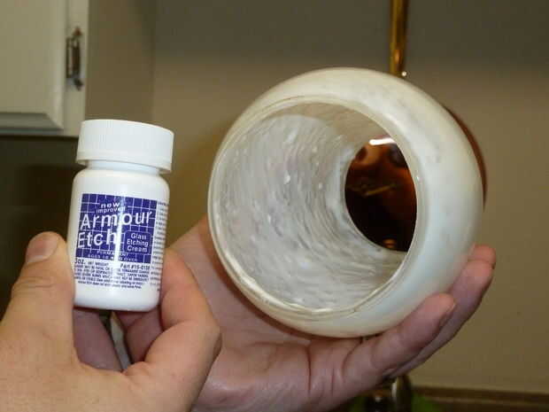 Algunas notas en este paso: encontré que la etch no tuvo especialmente bien, y tuve que grabar el tres veces para conseguir la opacidad que quería. No estoy seguro si esto es debido a la forma que enjuagarse o porque el vidrio era especialmente resistente a la etch o qué. Esta fue mi primera vez ha grabado nada, así que no estoy seguro cómo compara.
