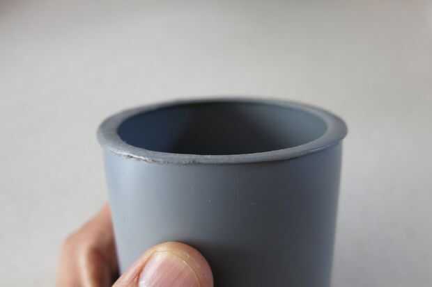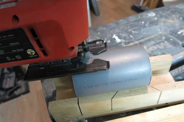 4. con una sierra de calar, hacer tres cortes, en uno de los extremos del tubo.