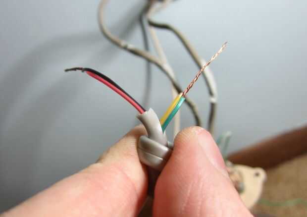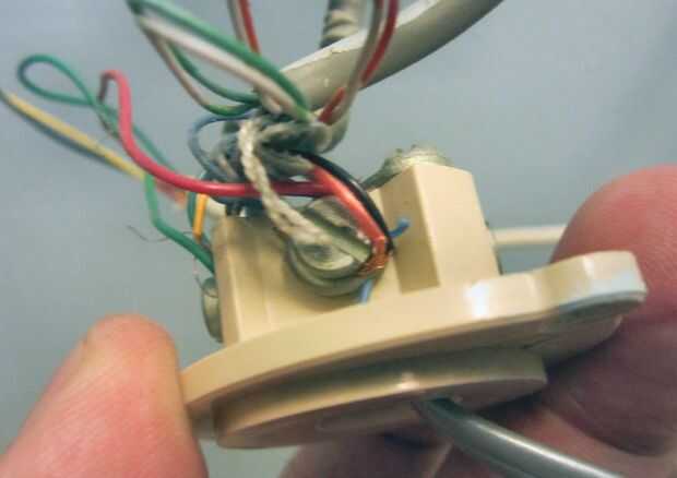 Mirando dentro, las cosas son un poco un lío, y sólo dos de las cuatro terminales estén en uso. Empiezo quitando algunos de blindaje de par 2 (WhiteOrange/naranja). Lazo aquellos alrededor de los dos terminales no utilizadas. Quiero el cable modular colgante con este par.