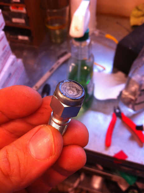 ACTUALIZACIÓN: El JB Weld dio hacia fuera después de unas semanas de uso, así que aproveché el bolt a mi tienda local de la soldadura, que lleno de escoria gratis. Luego perforé nuevamente el agujero y ahora funciona muy bien después de más de un año.