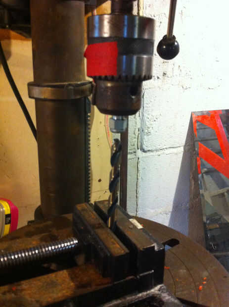 ** Un truco para conseguir un agujero perfectamente centrado sobre una pieza redonda como esta es hacerlo al revés, poner la pieza en el mandril del taladro, luego fije con abrazaderas la broca a su vice debajo finalizó *