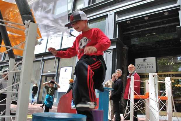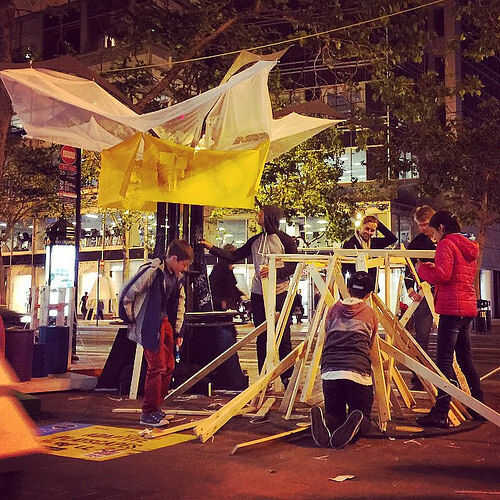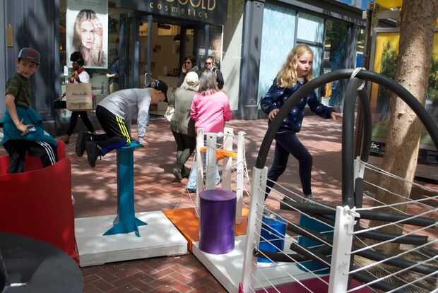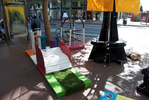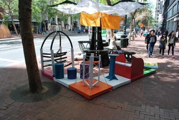 Para el Festival de prototipos de calle mercado, liderado por un equipo de estudiantes de secundaria 'Héroes' de la construcción, que dedican a los participantes del Festival en la creación de una 'vía adaptativa' que transforma una parte de Market Street con edificio y jugar.
