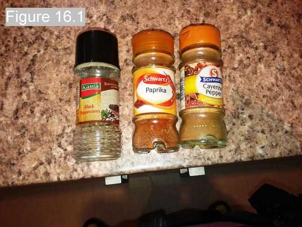 Como se puede ver, mi arsenal incluyen algunos pimientos! Tengo pimienta negra, pimentón y Cayena. Para añadir calidez puede agregar cualquiera de estos a tu gusto. Añadir 1/4 cucharadita de pimentón a la mezcla.