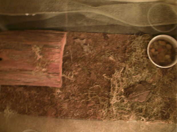 Una de las partes más importantes de mantener sapos como animales de compañía es asegurarse de que tienen un cozey agradable lugar para alojarse. Hay 3 cosas principales que deben estar en un tanque de sapo, agua, sustrato (tierra, musgo, grava) y escondites. Si nos fijamos en la figura siguiente el tanque en la imagen tiene esas 3 cosas.