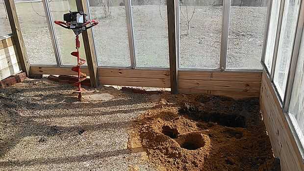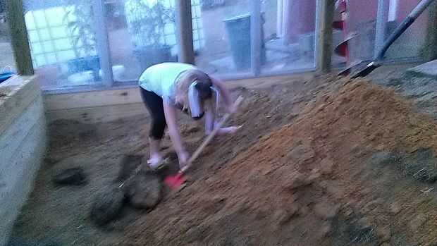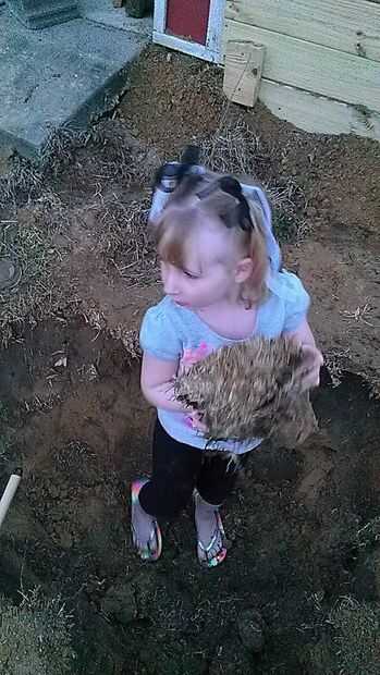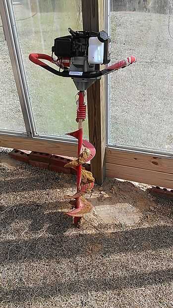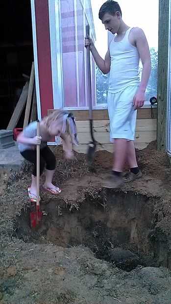 Excavación es mucho trabajo y no estoy pollo de primavera así que usé un taladro agujero de poste para ayudar a conseguir comenzado y cuando me cansé de excavación, recurrí al trabajo infantil (ver fotos - incluso ayudó los 6 años de edad).