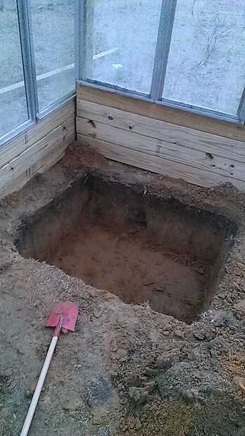 Quería enterrar los tanques de peces para que unos 12"- 18" fueron sobre la tierra. Esto le daría mis camas de crecer la capacidad de sentarse encima de ellos y estar a una altura ideal para trabajar con y siembra/cosecha. También tuve que tomar en cuenta que mi pecera más pequeña (corté la parte superior de un tanque para una cama de crecer por lo que queda un pequeño (aproximadamente 175 galones (650L) el tanque de pescados) tendría que ser ligeramente superior que me dé un fácil drenaje de gravedad (realmente utilicé 3 tubos de 1" para el drenaje a una buena cantidad de aireación para el tanque más grande) para el tanque más pequeño se sienta cerca de 2" de alto por ello.