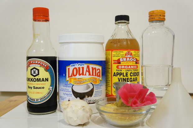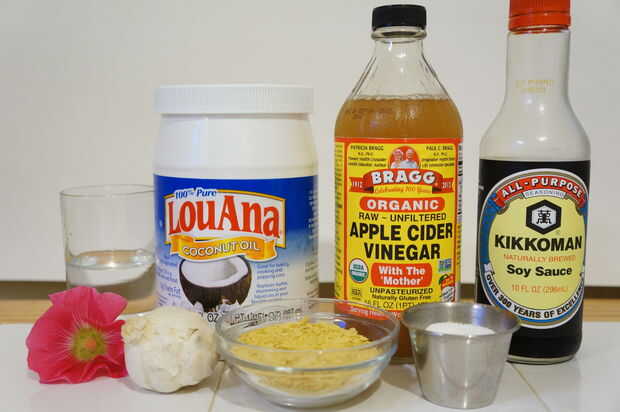 Toallas de papel (para las flores), procesador de alimentos o licuadora, cubiertos sopera o tinaja, medición de tazas, tablero de corte y tijeras.