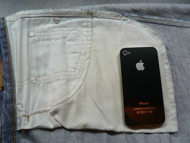Aquí es la forma de bolsillo delantero y no es ninguna sorpresa que el iPhone se deslice hasta el fondo.