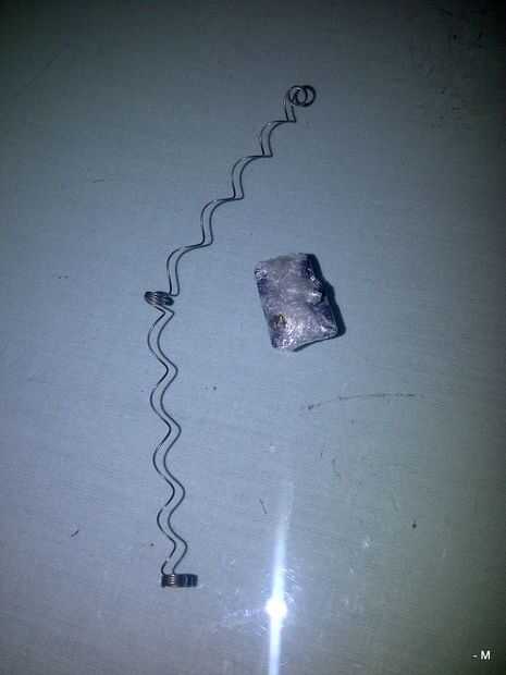 -Tome el resorte, tire de él y Envuélvala alrededor de aferrarse filmado artículo y torciendo los extremos juntos para hacer un lazo para una picadura ir a través de