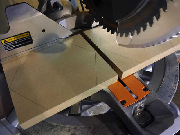 - Vio los hexágonos en la sierra, primero corte entre cada dibujado hacia fuera de forma; esencialmente "cuadratura" MDF alrededor de la forma que sería más fácil trabajar con en el inglete vio.