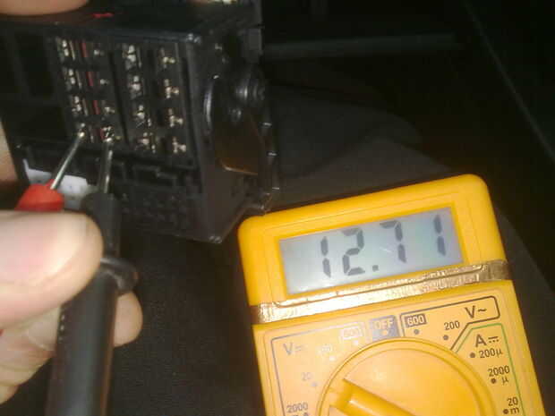Verificación para 12Volts entre la clavija de 12 v y el conector de tierra o chasis del automóvil