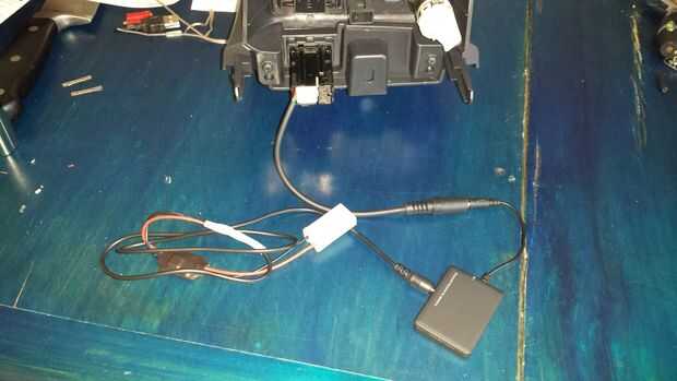 Conecte la salida audio de Bluetooth receptor a la entrada de audio recién soldada. Conecte la salida del cable convertidor DC-DC para el receptor de Bluetooth. Mediante bridas, asegúrese de que todos los componentes estén sujetos. Este es un paso importante si no desea que su complemento de traqueteo en el camino...