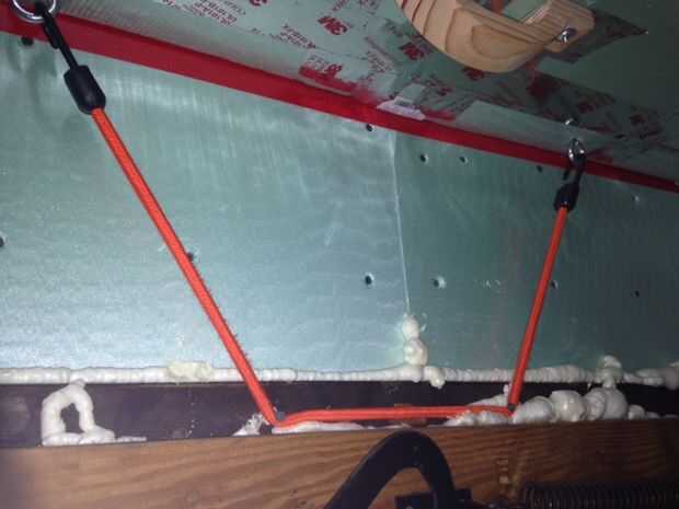Usé el mismo proceso para crear las tapas. Necesitaba hacer un trabajo para hacer dentro de cubiertas lucha firmemente. También he añadido el desmontaje de tiempo material para la costura entre la parte superior de las compuertas y las tapas. Usé algunas bisagras de gran correa para sujetar las tapas. Cuando abre el resto de las tapas contra una viga de soporte y en algunos cuerda atada a una viga del techo. También debían hacer un mango de madera de la escotilla del ático poder cerrar la tapa de las escaleras. En la última foto decidí que quería la escotilla del ático para cerrarse más fuertemente. Usé pernos de ojo y una cuerda del amortiguador auxiliar para asegurar la escotilla hacia abajo.