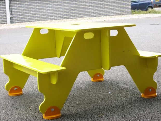 Esto fue comprada a nuestra atención cuando 4 grandes señoras con sus alimentos lejos de tomar decidieron que una de las mesas era un buen lugar para sentarse y disfrutar de su comida mientras observa uno de los espectáculos en la arena principal. Ahora eran las señoras substancial; Creo que 20 libras 280/piedras/127 kgs una pieza haciendo un total de alrededor de 80 kilogramos de piedras/11200 LB/500 y la tabla hundió una buena 4 o 5 pulgadas en el suelo. Después de estas señoras habían terminado de comer su llevar y habían disfrutado de la hospitalidad, Sammy; que funciona para mí cayó encima riéndose de mi intento de tirar de las patas de la mesa del suelo. Así que decidí hacer unos pies de gran área y ajuste a las tablas para evitar este problema que se presenta otra vez. Esta decisión resultada para ser acertada, como cuando Lois y me organizó una fiesta en nuestra casa durante el inicio del otoño en condiciones húmedas, ninguna de las patas de la mesa con sus pies nueva se hundió en la tierra, y ningún daño al césped.