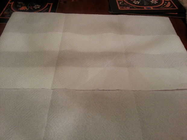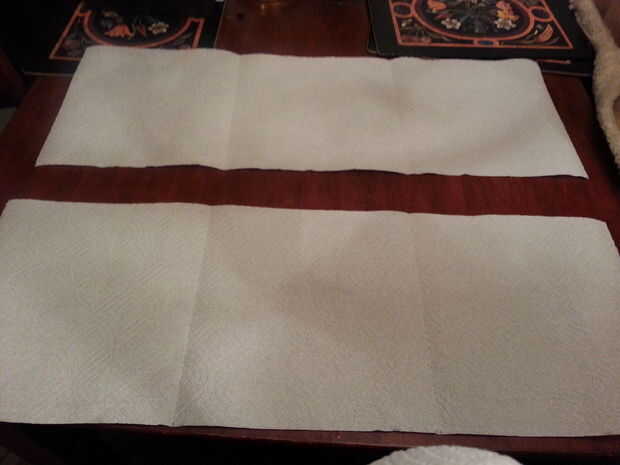 2. colocar 2 de las tiras de toalla de papel sobre una mesa unos 4" aparte.