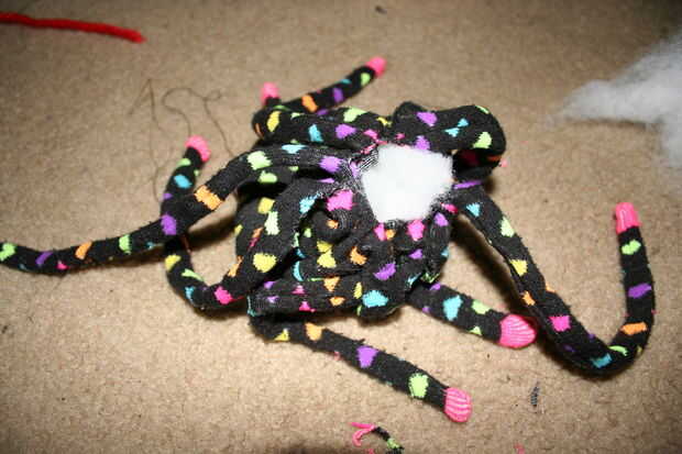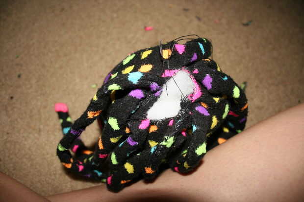 Cosas en la cabeza, forma con algunos semi violenta smooshing de mano y coser el agujero. (Sólo usé costura al azar).