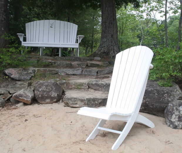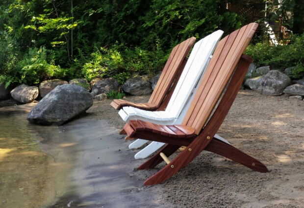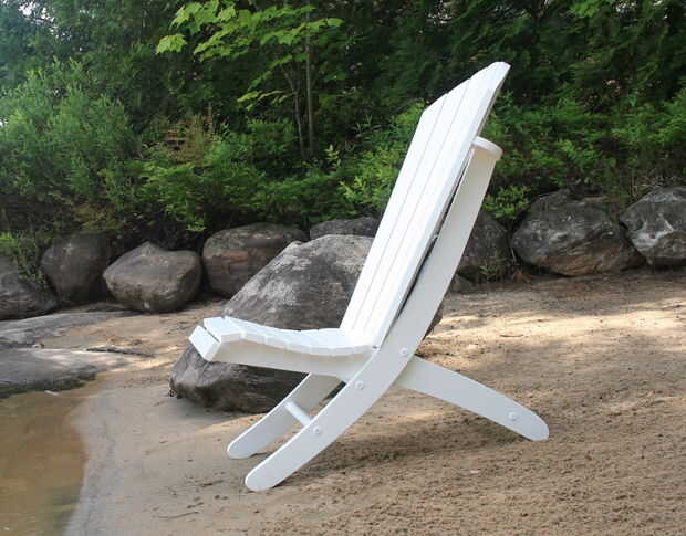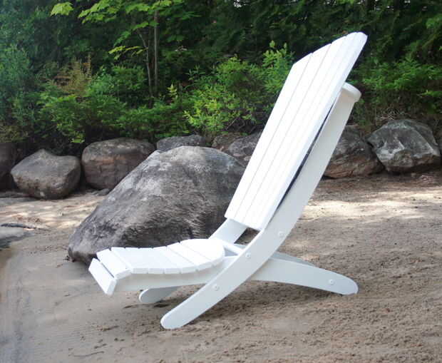 Mi objetivo era mantener fiel a mis diseños de Adirondack con el cómodo respaldo curvo y asiento, sin embargo, hacer una silla de playa portátil que puede descansar plenamente en una posición diferente... lo colgará en la pared así!