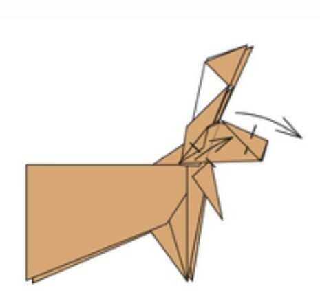 Doblez de Valle en la oreja. Repita detrás. Doblez reverso exterior en el hocico.