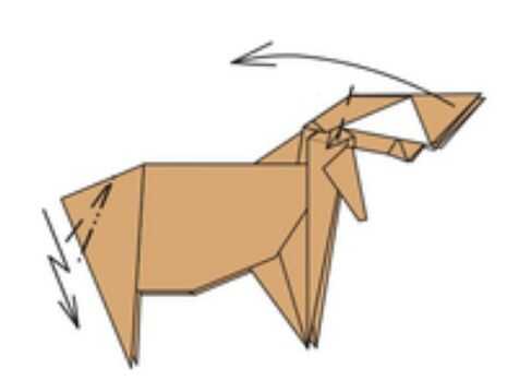 Prensado para formar la cola. Valle de doblar la cornamenta hacia atrás. Repita detrás.