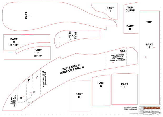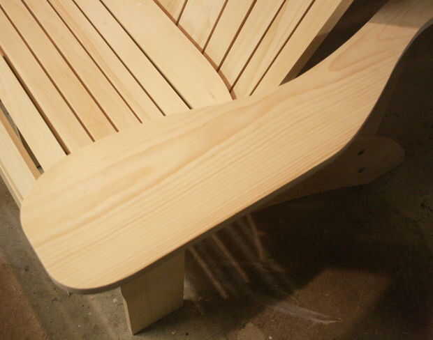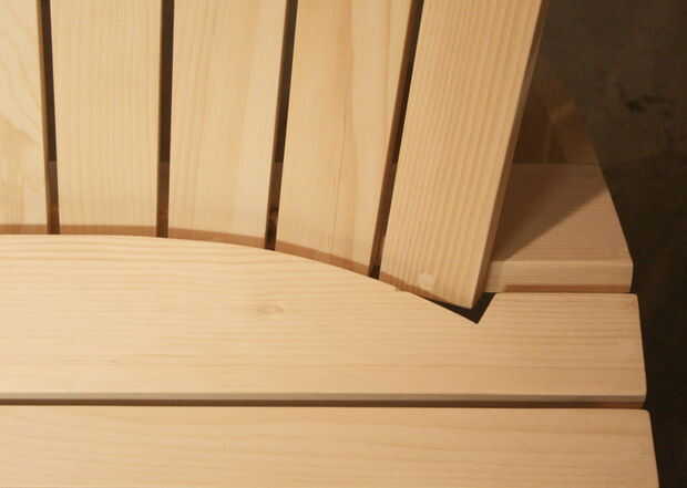 Los planes también incluyen cuadros y dimensiones de trineo cono que usar con mi sierra de mesa, para cortar los listones de la espalda y la espalda apoyan piezas. La silla está construida totalmente de 3/4"(1,9 cm) de pino, pero se puede hacer con tablas de cedro cerca. Algunos de mis clientes han utiliza 1"(2,54 cm) a la 1 1/2" (3.8 cm) acción de las piernas y los brazos.