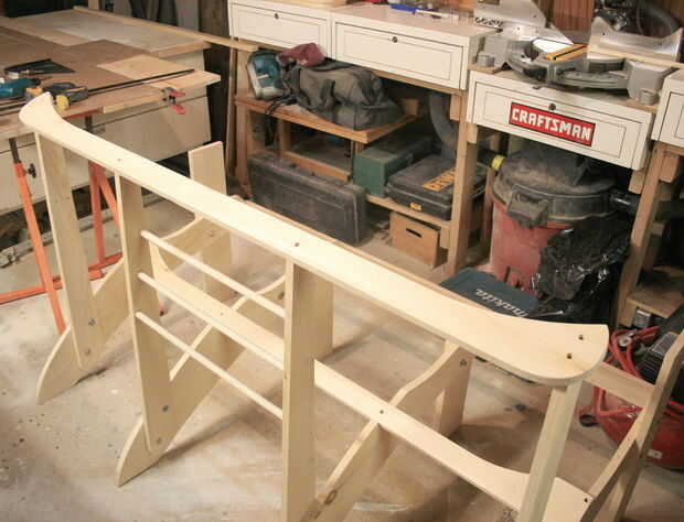 La espalda se curva en los extremos y en la sección media. El asiento es más corto, la parte de atrás es más vertical, pero aún así le permite descansar y tener una repetición. Mi esposa y yo podemos sentar en cualquiera de los extremos, con 7 y 5 años de edad nietos entre nosotros. Puedes ver la longitud arriba, sentarse de lado. La altura del asiento es silla regular altura de 17,5"(44,5 cm). He ampliado la altura de la espalda original, para que más gente puede descansar su cabeza. El listón de asiento trasero sigue la línea de los listones de la parte posteriores. Esto elimina el "butt-bite", causada por el espacio entre los listones de la espalda y el último listón de asiento, si es sólo una pieza de madera recta. Los brazos en 7.5"(19cm) ancho, mantenga un plato o una revista y descansar cómodamente los brazos con el café en la mano. La imagen de pino barlovento y el Inukshuk, son patrones de corte incluidos como un tamaño completo PDF, si desea añadir uno de ellos a la laminita del centro. La tercera imagen muestra una instalación de rack opcional toalla y revistas entre los listones de la mediados de la banca de familia sólo. Son escalonadas para permitir mejor espaciado.