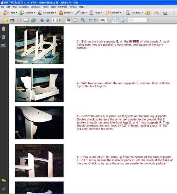 Los planes enviados incluyen tamaños de parte en dimensiones estándar y métricas, instrucciones con fotos paso a paso, fotos de piezas y tamaño papel recortes, que se pueden trazar en cartón para plantillas permanentes. Cada una letras en el orden de montaje, y las piernas están marcadas para ubicaciones de perno.