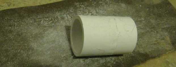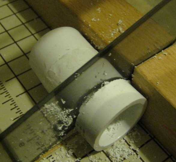 En este paso, acortar el PVC para hacer espacio para el acrílico base. Cortar las crestas de la boquilla de PVC para que sea fácil de inglete Sierra.
