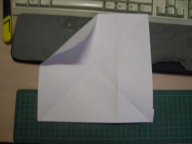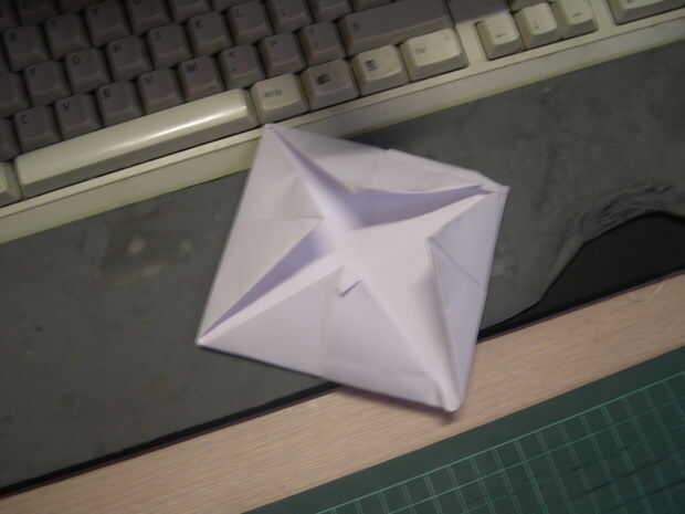 Doble las 4 esquinas hacia el centro. Voltear el papel y repita.