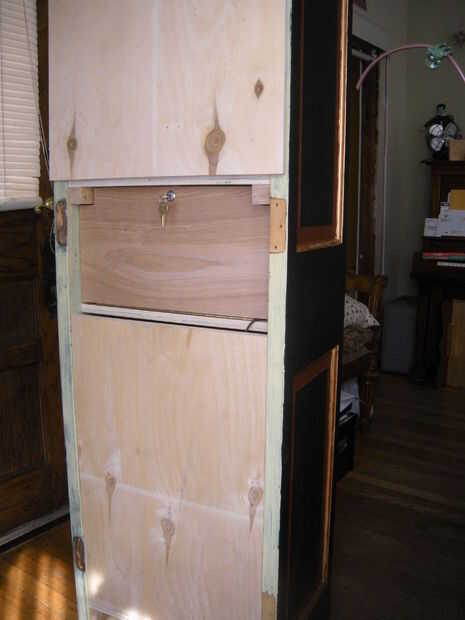 decidí que quería hacer este proyecto mirada tan profesional como sea posible. Sentí que la parte de atrás debía cubrirse, pero también quería tener fácil acceso sin tener que moverse demasiado para entrar en ella. Las posibilidades son bastante buenas que estará sentado contra una pared en algún lugar, por lo que requiere demasiado espacio para abrir una puerta con bisagras. Decidí cortar para ajustar la parte de atrás y utilizar la gravedad para mantener las cubiertas en la madera contrachapada. Arrancó un trozo de madera en la Sierra de mesa en un ángulo y luego cortar segmentos de ella para mis soportes de gravedad. Si utilizas esta técnica, utiliza una fuerte suficiente madera tipo donde puede perforar un agujero y poner un tornillo en él sin partir. Asegúrese de cortar grandes suficientes segmentos de modo que hay un montón de sitio para perforar para el tornillo, sin comprometer la resistencia de los soportes. Medir cuidadosamente para que los soportes de línea del panel y el gabinete. A continuación, taladre orificios guía. Había utilizado un tornillo por lo que los soportes de auto alineación sería. Poner el tornillo en apretado lo suficiente para que el soporte no se mueve cuando cubrir y quitar el panel, pero se moverá ligeramente para alinearse con el ángulo de su compañero.