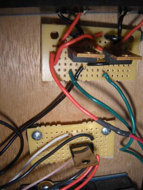 Los MOSFET pueden ser soldados a la misma Junta, pero sólo usé uno que había creado antes de este proyecto. Puesto que el motor y los LEDs son solamente brevemente, no es necesario un disipador de calor. Aunque si modifica el bosquejo a donde están siempre en, un disipador de calor sería una buena idea, especialmente para el mosfet motor.