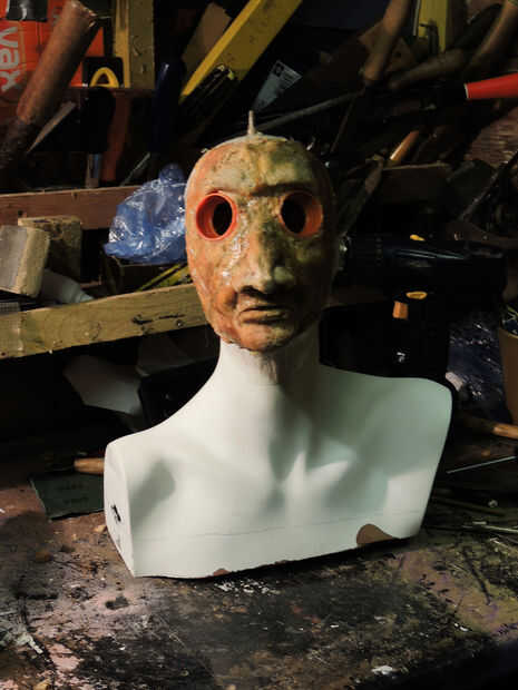La cabeza de este autómata fue construida con un maniquí exposición dañado de la exposición Ballgowns en el V & A. La mascarilla es un prueba-casting látex de una monstruosidad anterior (Twitr Janus). Fue empalmado en pedazos y luego back Frankensteined para crear una versión nueva y espeluznante incluso por envolver el maniquí liso.