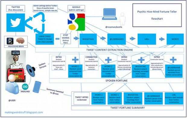 La aplicación de twitter está conectada con el cerebro psíquico. Se trata de un esquema de procesamiento que se ejecuta constantemente.