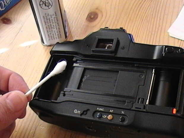 5. una vez limpias las láminas de la persiana, voltee la cámara así que buscas donde iría la lente.