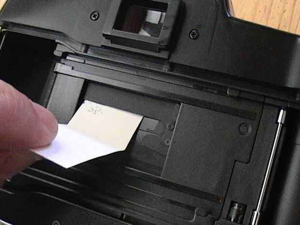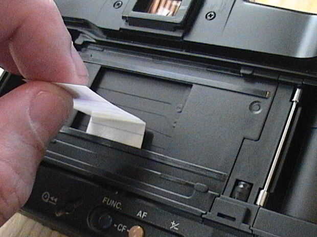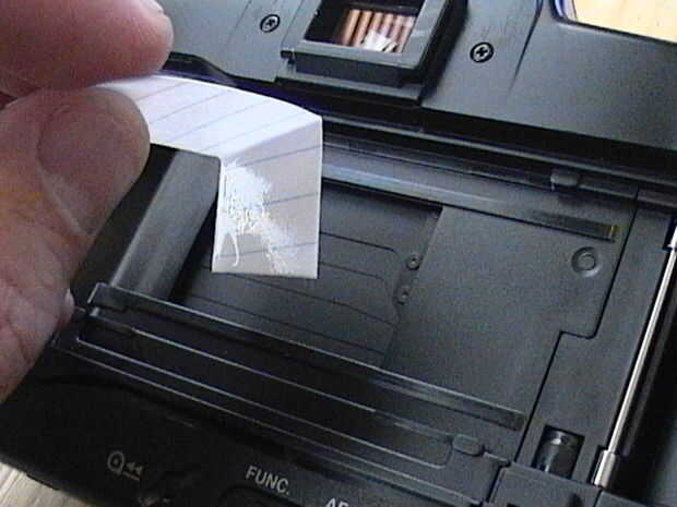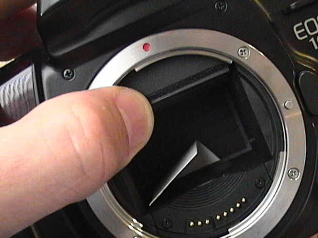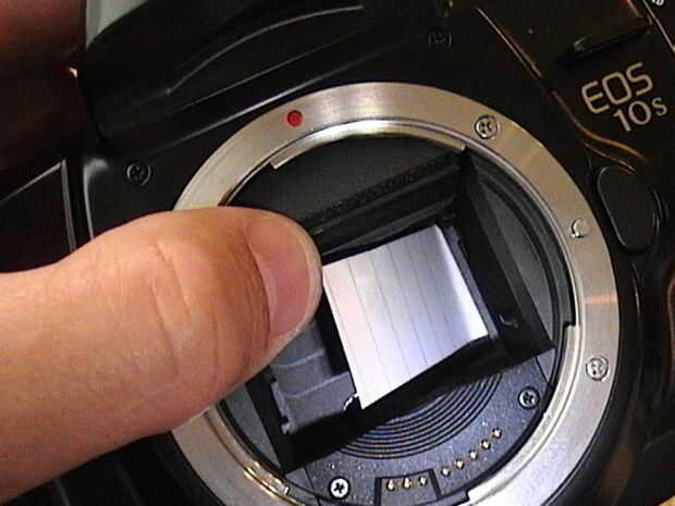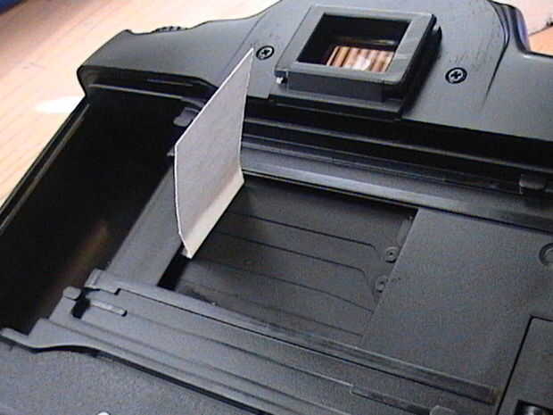 9. una vez que estés satisfecho con la limpieza de la persiana, apagar la cámara, mover el espejo de en medio y repetir todo el procedimiento a través del frente de la cámara. Es un poco difícil porque están trabajando en un pozo, sin embargo, se puede hacer.