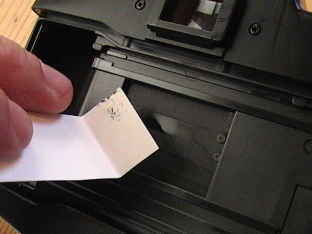 12. después de seco el obturador de disparo, examinar las láminas de la persiana de ambos lados.  Si la acción de la persiana criado cualquier goo negro nuevo, repita el procedimiento de limpieza.