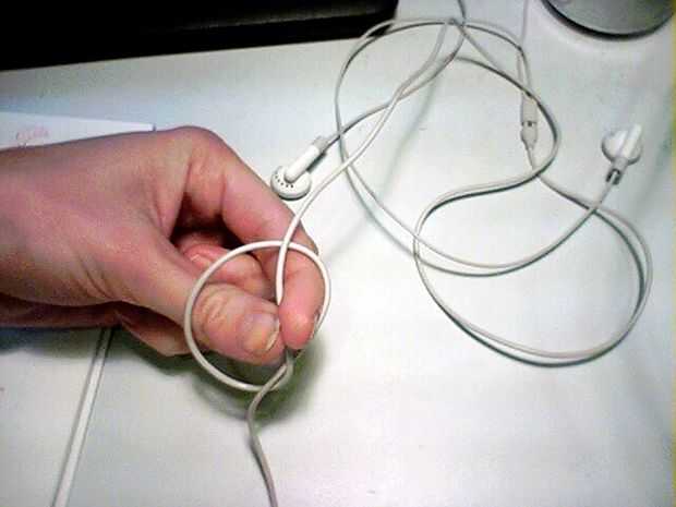Paso 1: Primero, hacer un nudo normal cerca del extremo del enchufe, pero no tire de los audífonos a través de todo el camino.