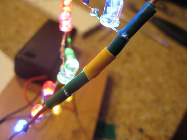 Este árbol es alimentado por un cargador de pared USB y dispone de lento cambio luces de color RGB. Es un buen proyecto para aprender a soldar, así como de aprendizaje de circuito simple conceptos como resistencias de limitación actuales para LEDs y