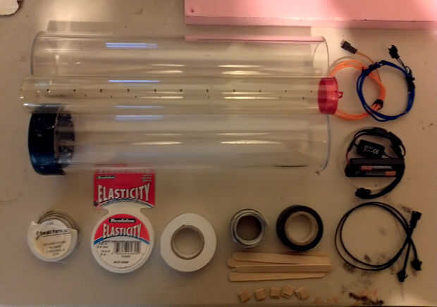 2 x tubo de acrílico del molde - OD 3" 1/4 o 1/8" espesor de pared, 12" de longitud. (76.2 mm OD 6,32 mm 3,18 mm pared o 304,8 mm de longitud) Fuente: http://www.eplastics.com Nota: tubo de acrílico del molde es mayor calidad de extrusión pero va a costar un poco más. ¡ Vale la pena. Las estrías en la claridad que vienen desde el proceso de extrusión hacen menos deseable para el uso previsto.