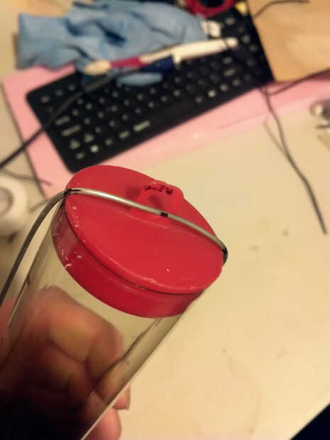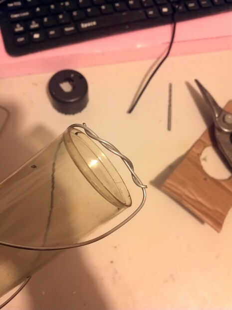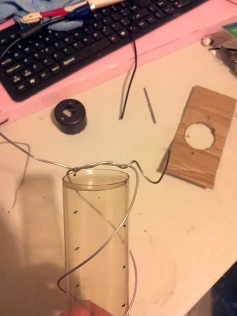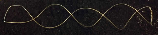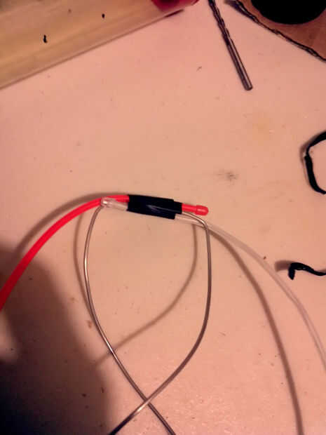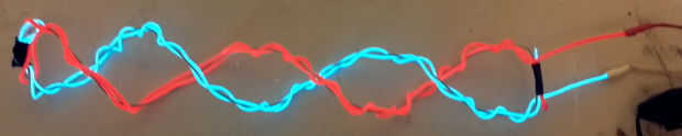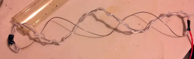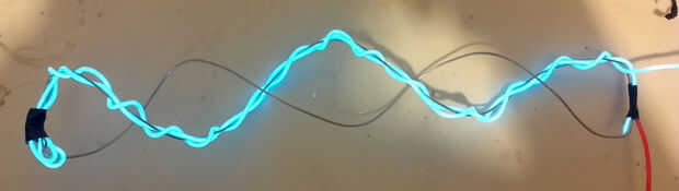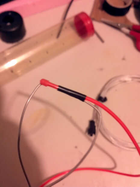 * En este punto, algunos de ustedes se estarán preguntando por qué simplemente no añadir el el cable antes de hacer la bobina. Inicialmente lo hice y ambos filamentos murieron muertes horribles. Ahora lo hago de esta manera. EL cable utiliza un hilo recubrimiento fosforescente con otro cable (corona) envuelto alrededor de él como una raya de caña dulce de horrible maldad frágil. Bueno, la conexión de alimentación punto de todos modos. El resto parece estar bien. Cabe señalar que tener que quitar la hebra después de que tienes en el cable de soporte y tienen los travesaños envuelto apretadamente alrededor de él, después de haber pasado un día o cristales tan crecientes, que ahora tiene que quitar, es una tarea ligeramente molesta que es mejor evitar.
