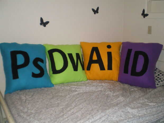 esto es una gran idea del regalo para cualquier nerd del diseño gráfico en tu vida. Son almohadas modelados después de los iconos para los programas de Adobe CS4. Míos son grandes, pero es muy fácil de hacerlos más pequeños. Explicaré en el camino.