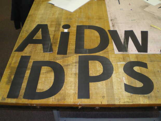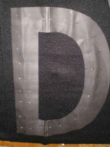 b. Trace una línea alrededor de cada letra con un lápiz, tiza o algo más. Quite las clavijas y las plantillas y cortar muy cuidadosamente cada letra.
