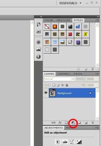 Haga clic en el icono de la "Capa de ajuste", el icono de círculo mitad sombra en la paleta de capas.