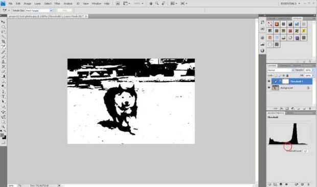 Volver a la flecha blanca en el menú de umbral. Mover flecha totalmente en el extremo derecho.