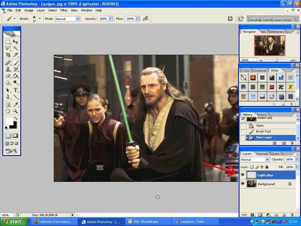 Mantenga CTRL + MAYÚS + N. O ir a la nueva capa. Hará que aparezca la ventana de nueva capa. Llamarlo como sable de luz o cosa. Usted puede elegir su color de la capa. Bien del golpe y su capa se mostrará en el cuadro capa.