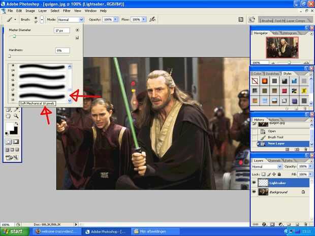 Si el cepillo no está allí, elegir cepillos básicos desde el menú de preset.