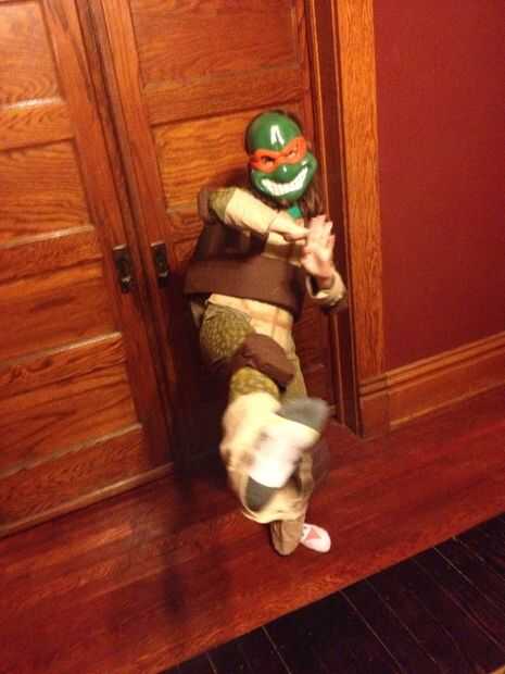 el año pasado terminé mi tortuga favorita personal, Mikey.  Me tomó 1 año para terminar el traje, pero no podía ser una tortuga.  Por lo tanto, era imprescindible que completar a sus tres homólogos.  Después de 2 años desde el nacimiento de la idea d