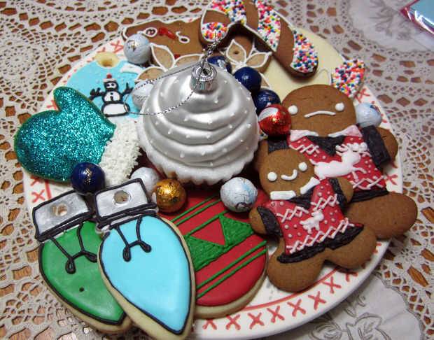 Decidir si vas a entregar el árbol decorado, o si no, encontrar unos bolsos lindos o una placa para poner sus ornamentos en su destinatario desenvolver. Tomé el plato de galletas (arriba) con un adorno de cristal de la Magdalena y un chocolate y envuelto todo en celofán como un regalo de anfitriona para una fiesta de corte de árbol.