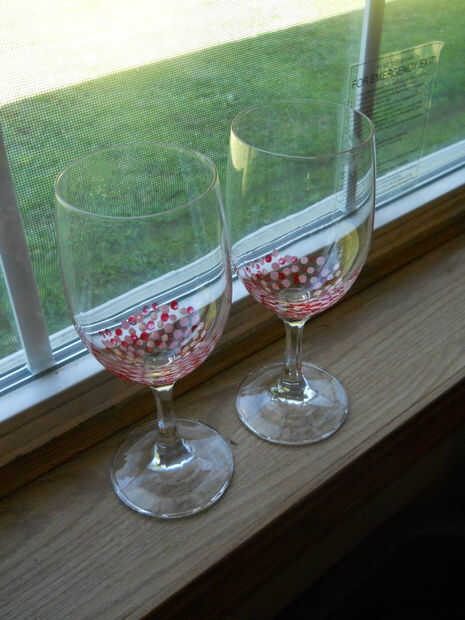 un conjunto barato de copas de vino puede ser disfrazado con alguna pintura de vidrio de la tienda de artesanía! Simplemente pintar remolinos alrededor de la parte inferior y la mejor parte de este proyecto, se recomienda imperfección! Se ve tan pers